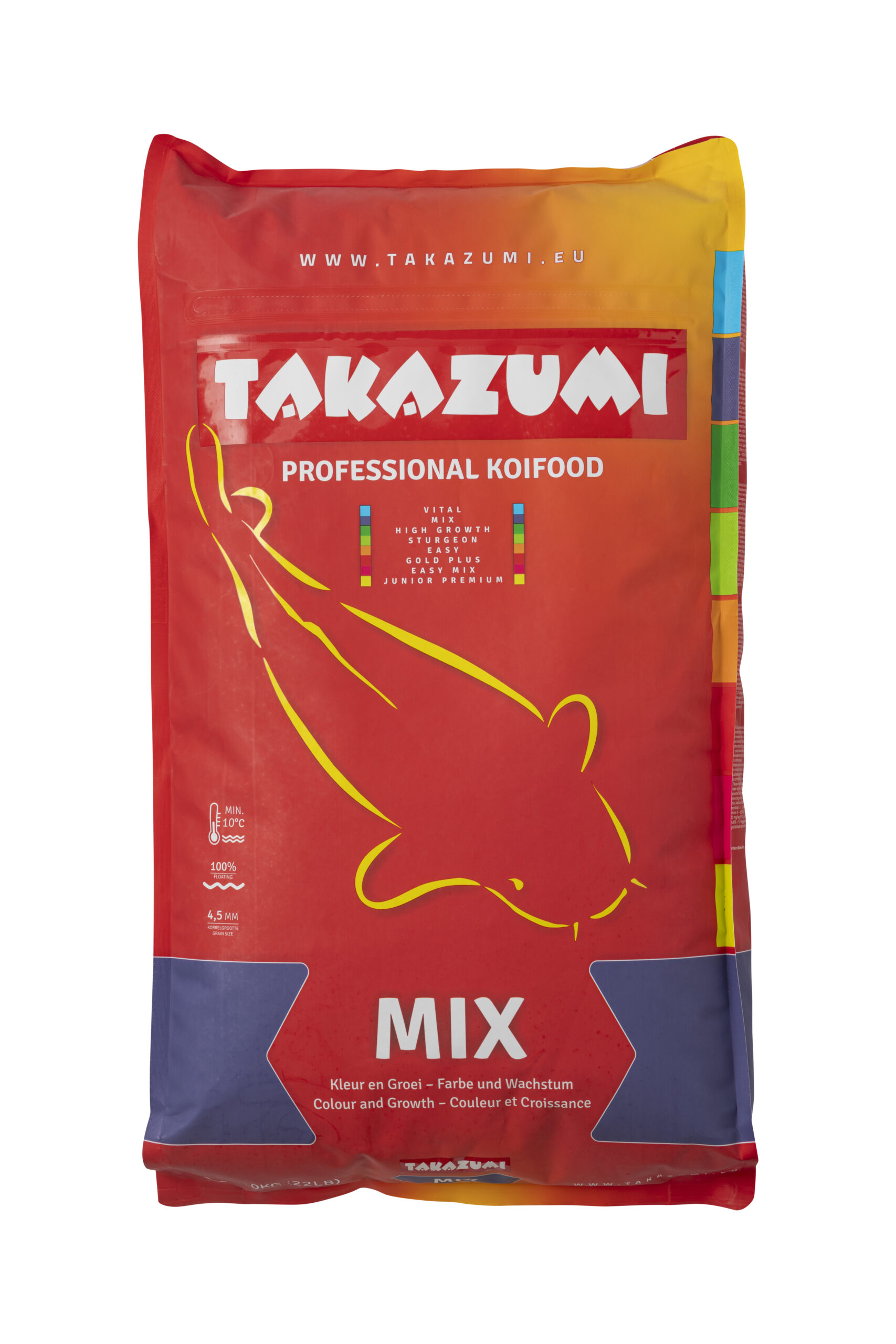 Een volledig en uitgebalanceerd professioneel koivoer met alle voedingsstoffen voor een gezond leven, een optimale, snelle groei en een intense kleuring. Takazumi Mix is een kwalitatief hoogwaardige voeding die het water niet vertroebelt.